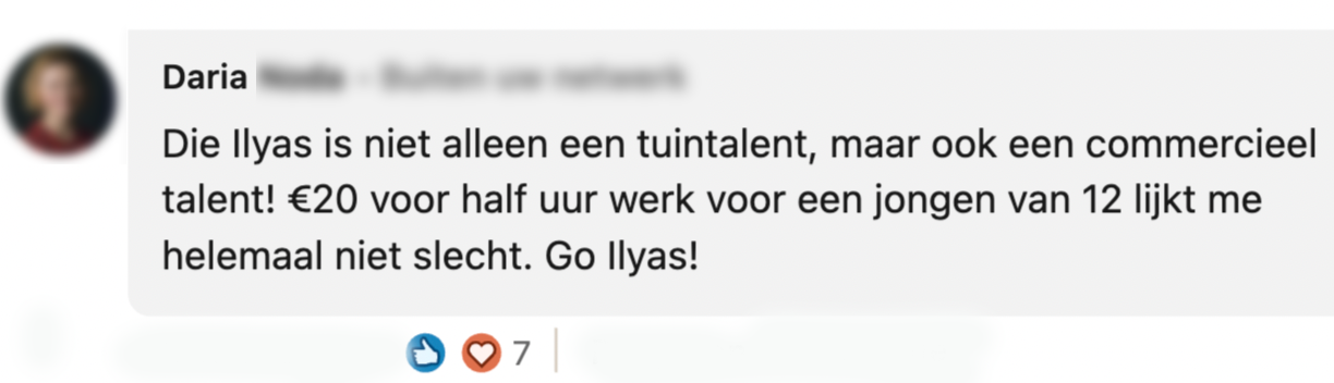 Je kan niet jong genoeg beginnen met ondernemen, moet de twaalfjarige Ilyas gedacht hebben. Sinds anderhalve maand knapt hij voor een kleine bijdrage tuinen in Den Haag op. Zo belde hij onder andere aan bij Ming Faraz Khan, die met zijn bek vol tanden stond van verbazing. Nog nooit had hij iemand op die leeftijd zó gemotiveerd zien werken. Hij plaatste er een bericht over op LinkedIn, dat al snel viral ging.