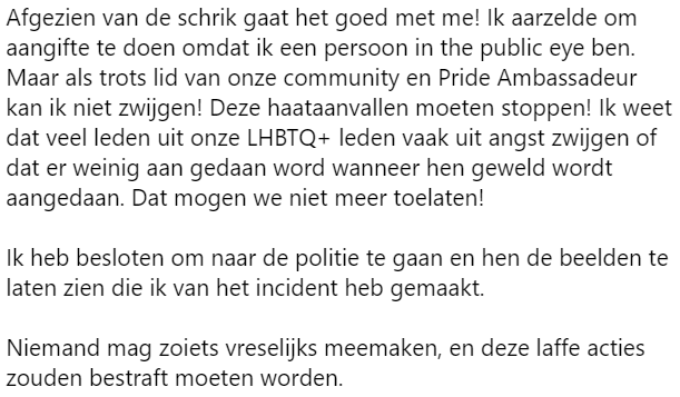 De demonisering van dragqueens, transpersonen en andere lhbti’ers wordt steeds erger. Het wordt gevoed door onder andere politici, opiniemakers en NPO-presentatoren, en dit is het resultaat. pic.twitter.com/ASYbVbbehI