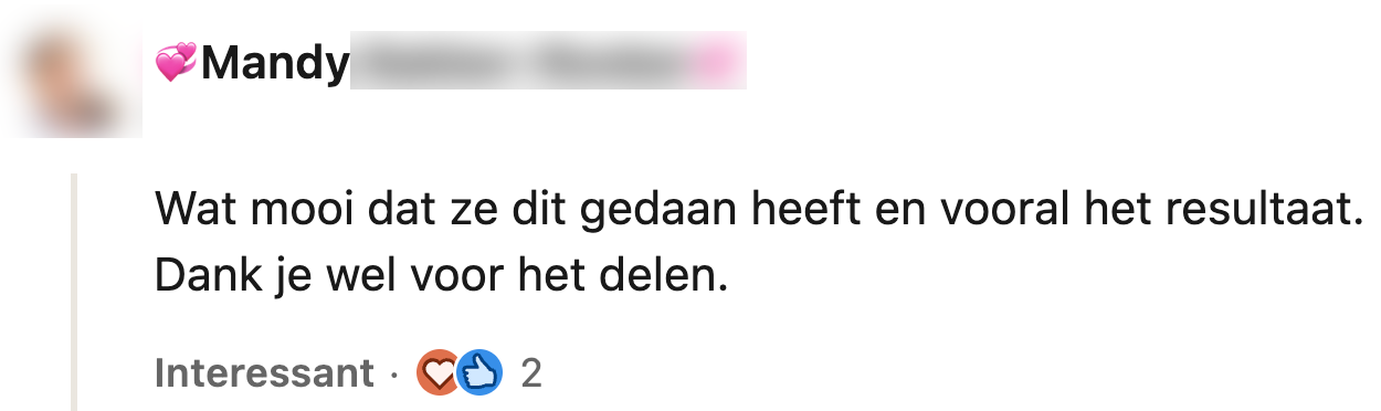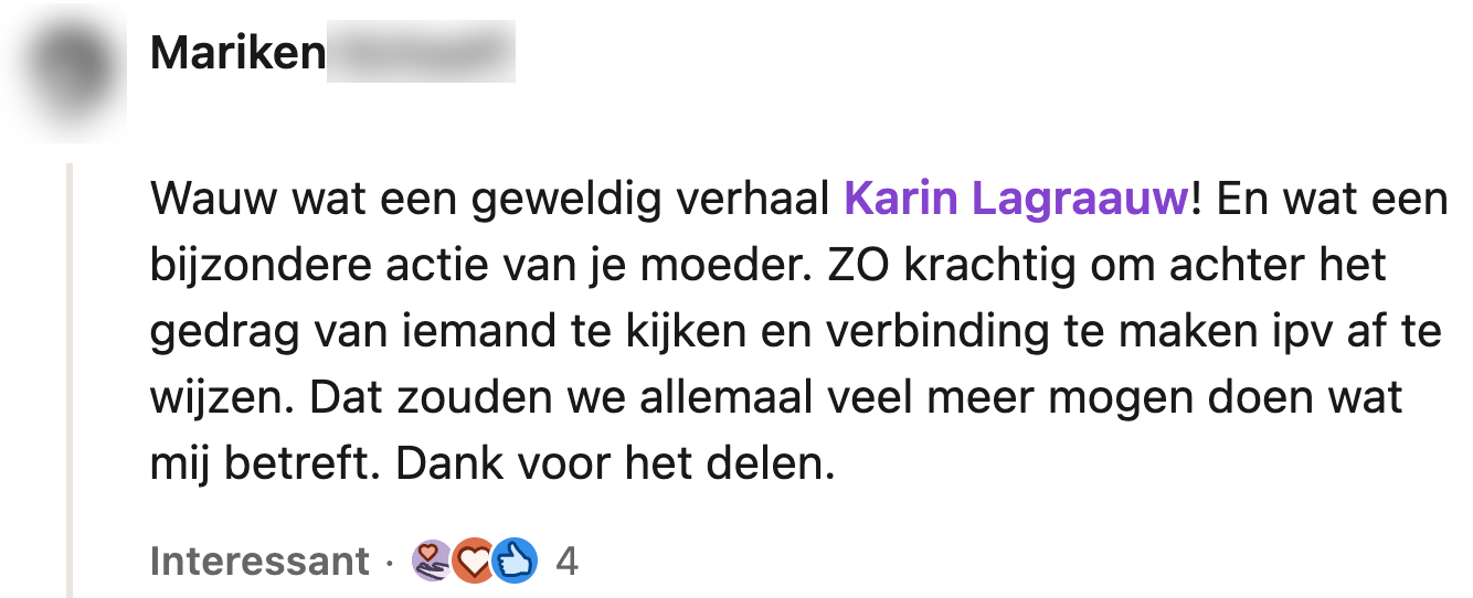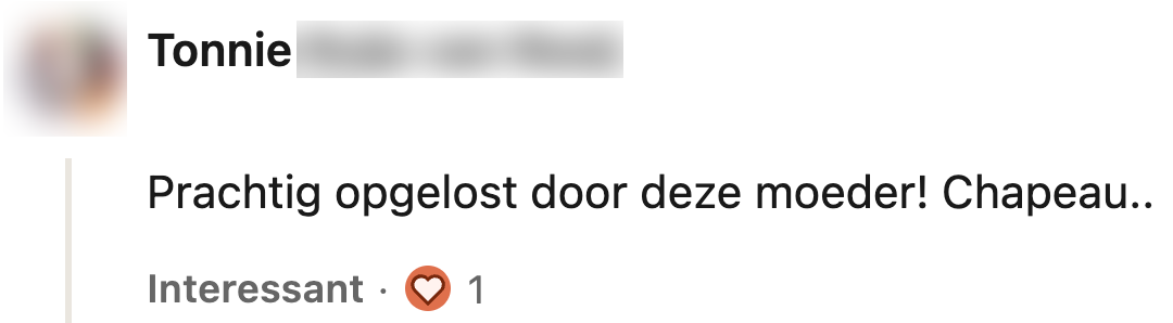 6. De moeder van Karin krijgt veel complimenten voor haar actie.