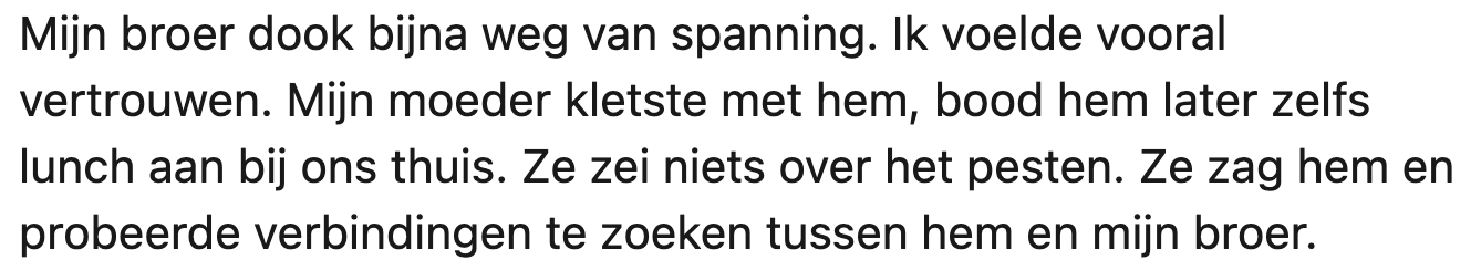 1. Na schooltijd wees de broer van Karin de jongen aan die hem zou plagen.