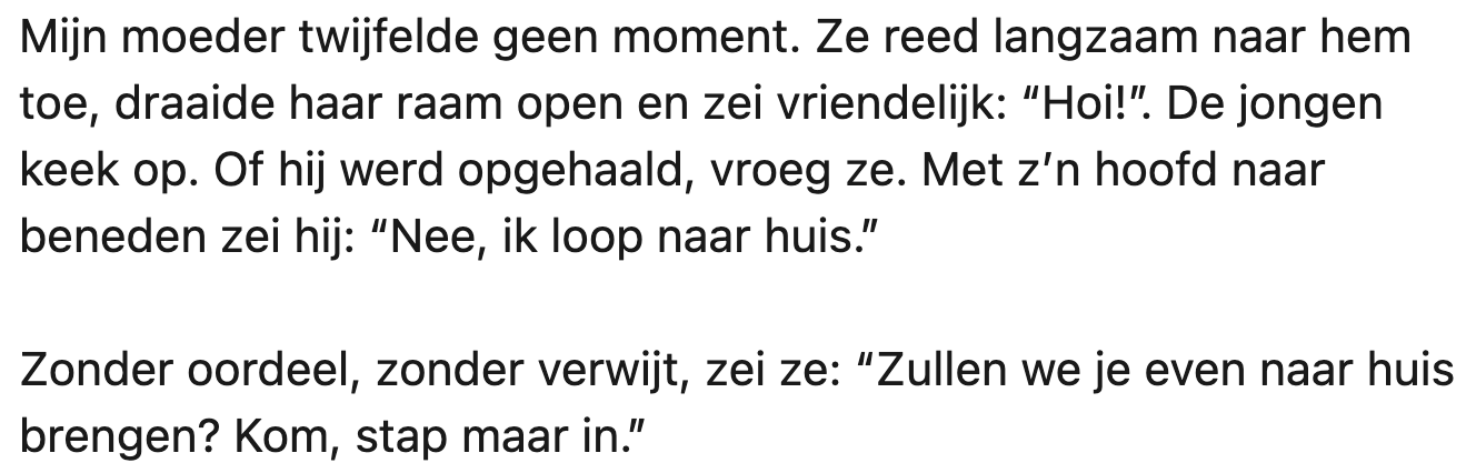Moeder geeft pestkop van zoon een lift en dat verandert alles