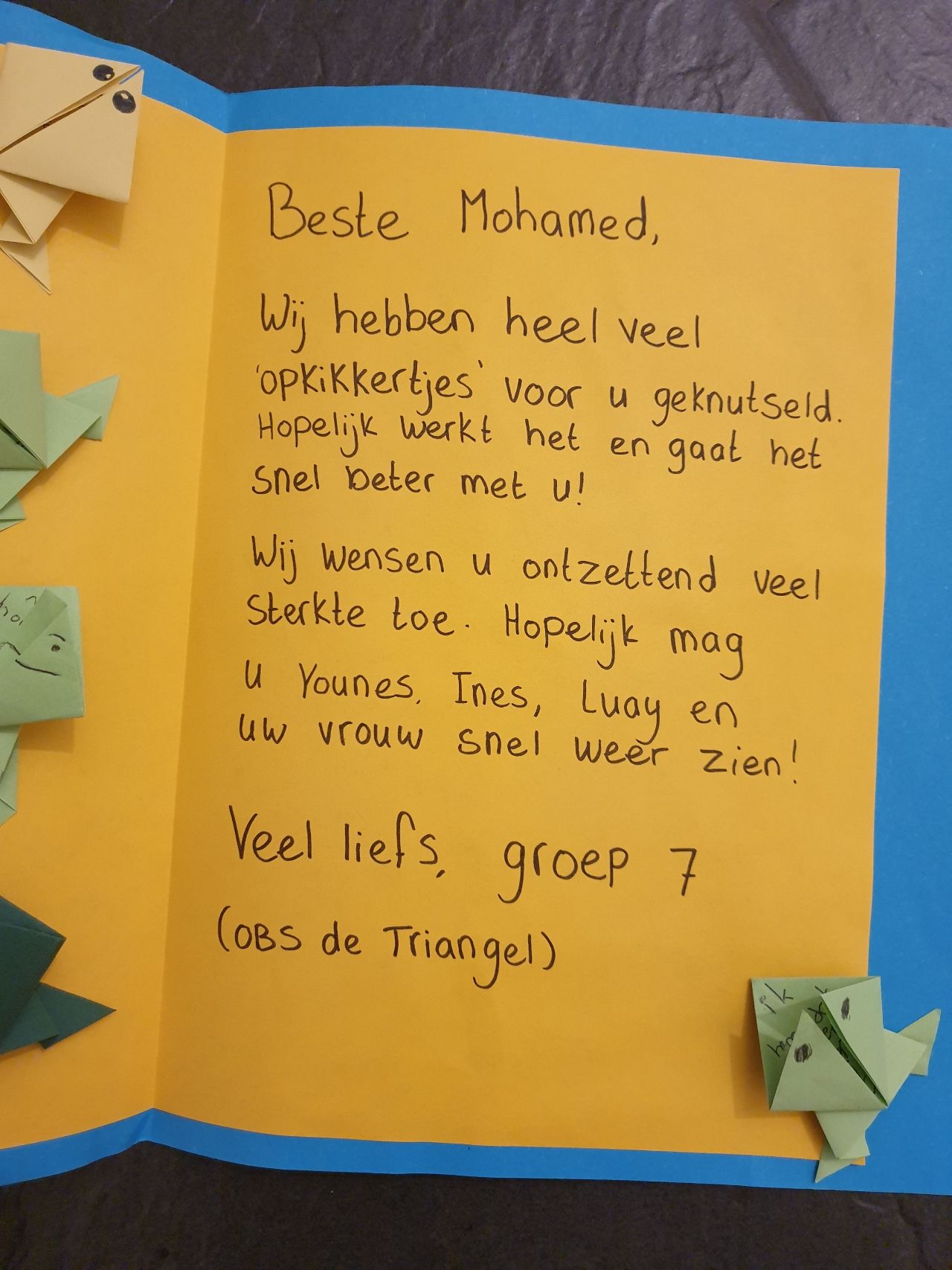 8. En tot slot: Mohamed heeft heel veel lieve kaartjes ontvangen. En let vooral even op de afzenders van de onderste kaartjes.