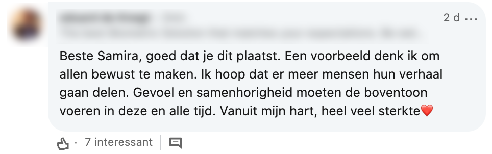 1. Dit is het bericht dat Samira post op LinkedIn.