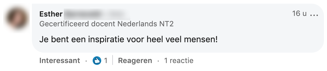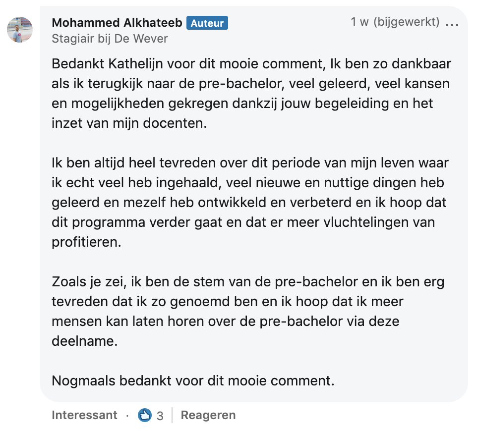 3. Hij krijgt mooie complimenten onder zijn post, van onder andere zijn docenten.