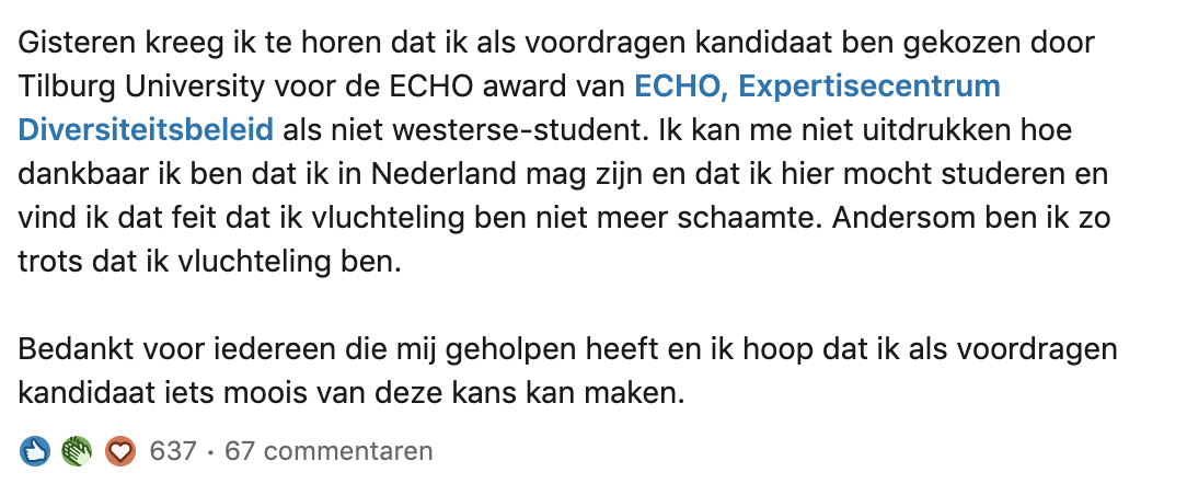 2. Hij kwam terecht bij de pre-bachelor voor vluchtelingen in Tilburg, en daar wist hij een onderscheidende indruk achter te laten.