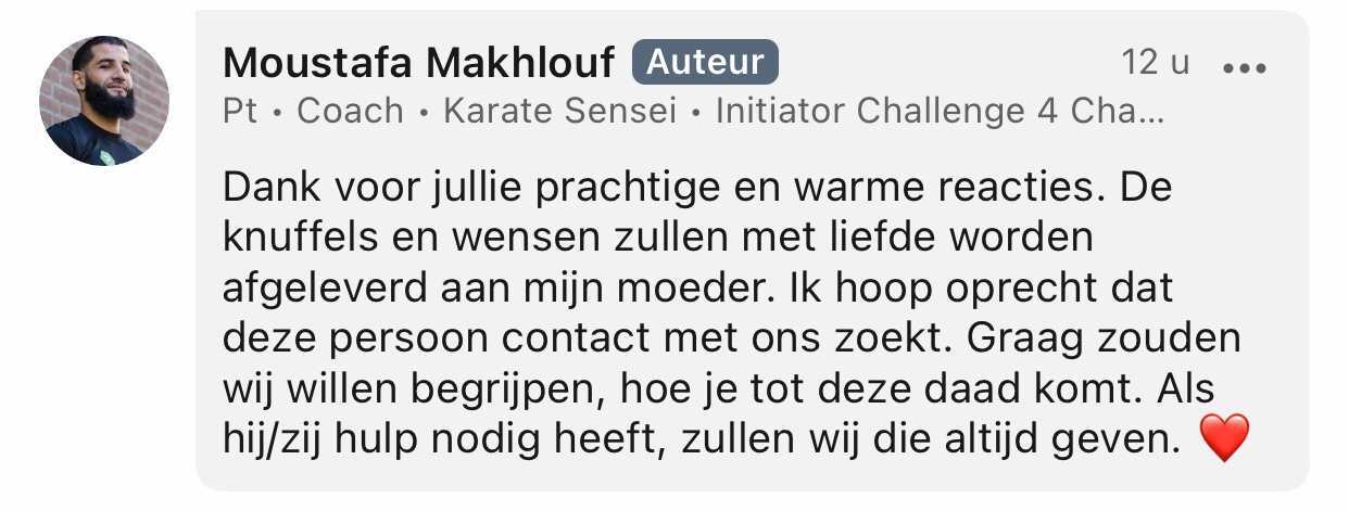 5. En tot slot bedankt Moustafa alle lieve woorden en hoopt dat de persoon in kwestie zich meldt.