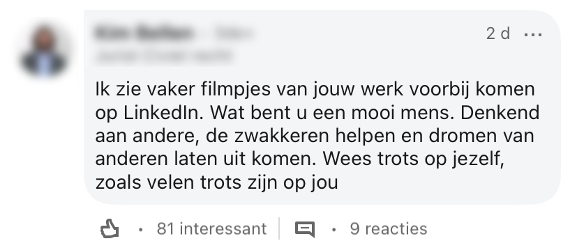 2. Hij krijgt er veel mooie reacties voor terug.