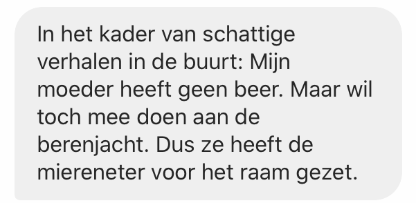 1. Jullie doen allemaal massaal mee met de Berenjacht. Een kleine moeite om de kinderen in je buurt heel blij te maken.