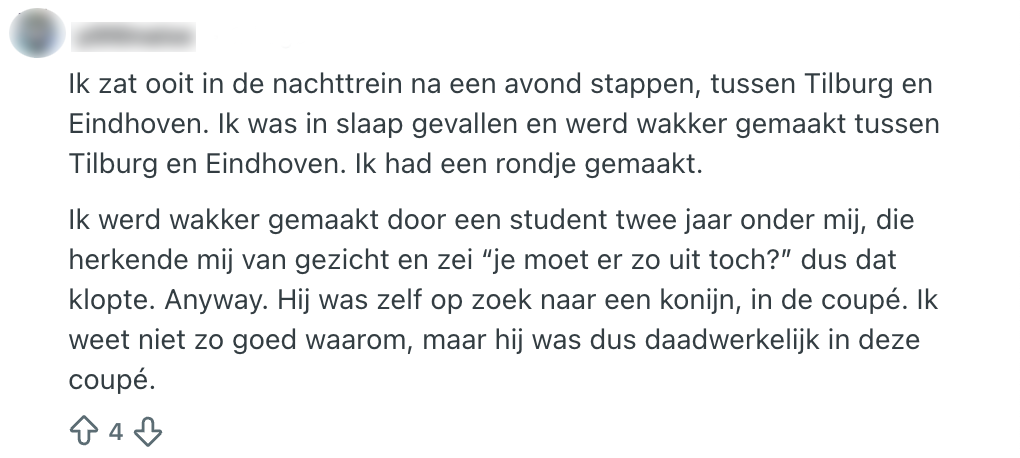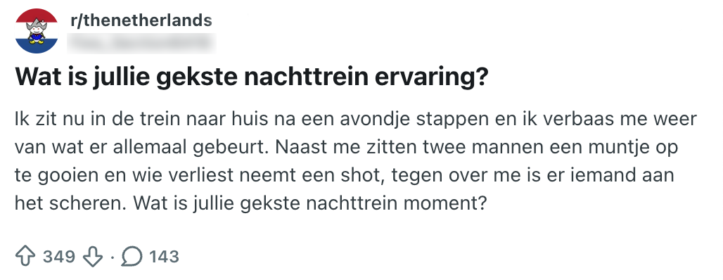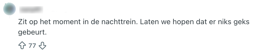 Als je overdag met de trein gaat, kun je je ogen uitkijken. Overal waar je kijkt is er wel iets te zien – van vriendengroepen in beestachtige outfits tot medereizigers die hun gore, geknipte nagels door heel de coupé strooien. Toch gaan treinreizigers ’s nachts pas écht los. Deze Reddit-gebruiker is benieuwd naar de meest bizarre ervaringen in de nachttrein en de antwoorden zijn helemaal loco.