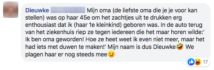 2. En in de comments delen mensen hun eigen ervaringen met de namen van hun kinderen.