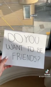 Weet je nog vroeger, toen je in de kleuterklas een willekeurig iemand uitkoos en vanaf toen vrienden was voor het leven? Dat waren nog eens tijden. Helaas is het in het volwassen leven ineens niet meer zo makkelijk. Zéker in tijden van thuiswerken en weinig sociaal leven. Dus, dacht @corporatenatalie, waarom het er niet op wagen en ouderwets met briefjes – en, vooruit, vrij weinig schaamte – in de weer gaan?