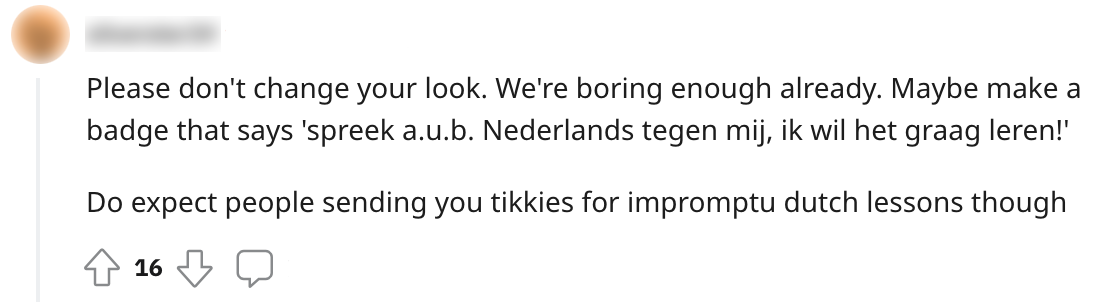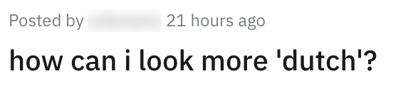 Het maakt niet uit in welk land je je bevindt, wij Nederlanders worden binnen no-time uit de massa toeristen geplukt. Da’s ook niet gek, we steken namelijk vaak boven de menigte uit. Maar laten we eerlijk zijn: wij pikken de toeristen in Nederland er ook zo uit. Als je hier voor langere tijd wil blijven wonen en de taal wil leren, is het vrij irritant als mensen je steeds in het Engels blijven aanspreken. Daarom vroeg deze Reddit-gebruiker af: hoe kan ik er meer uitzien als een kaaskop?