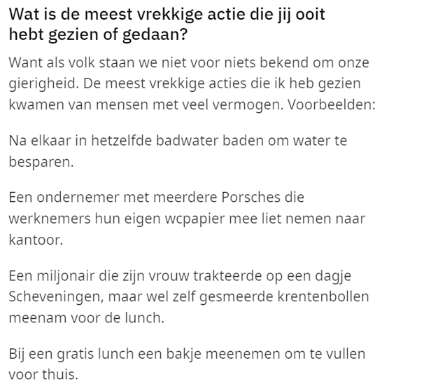 Nederlanders delen meest gierige acties die ze ooit hebben meegemaakt