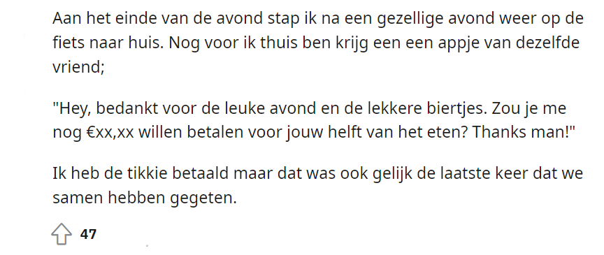 Het is niets nieuws dat wij Nederlanders bekend staan om onze vrekkige acties. Van tikkies voor een croissant tot aan het nauwkeurig splitten van werkelijk iedere gezamenlijke rekening: we sparen heel wat geld uit met z’n allen zo. De volgende Reddit-gebruiker heeft zelf ook al het een en ander meegemaakt wat betreft gierige acties en was erg benieuwd naar nog meer originele verhalen.