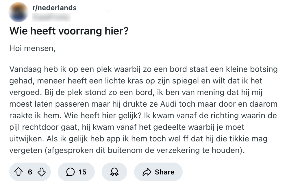 1. Hopelijk kan deze Reddit-gebruiker wel voorrang krijgen op een opfriscursus auto theorie.