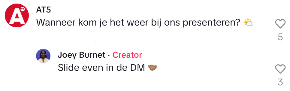 Het weer in Nederland is meestal niet heel denderend, want vaak is het koud, regent het, of waai je zowat uit je sokken. Op de dagen dat het ineens wél lekker weer is, maken we daar goed gebruik van door een terrasje te pakken of naar het strand te gaan terwijl de temperatuur van het water nog wel dichtbij het vriespunt ligt. Om jezelf voor te kunnen bereiden op het weer plaatst Joey elke dag het weerbericht op TikTok. Door zijn advies helpt hij veel Nederlanders uit de brand en kunnen ze inmiddels niet meer zonder.