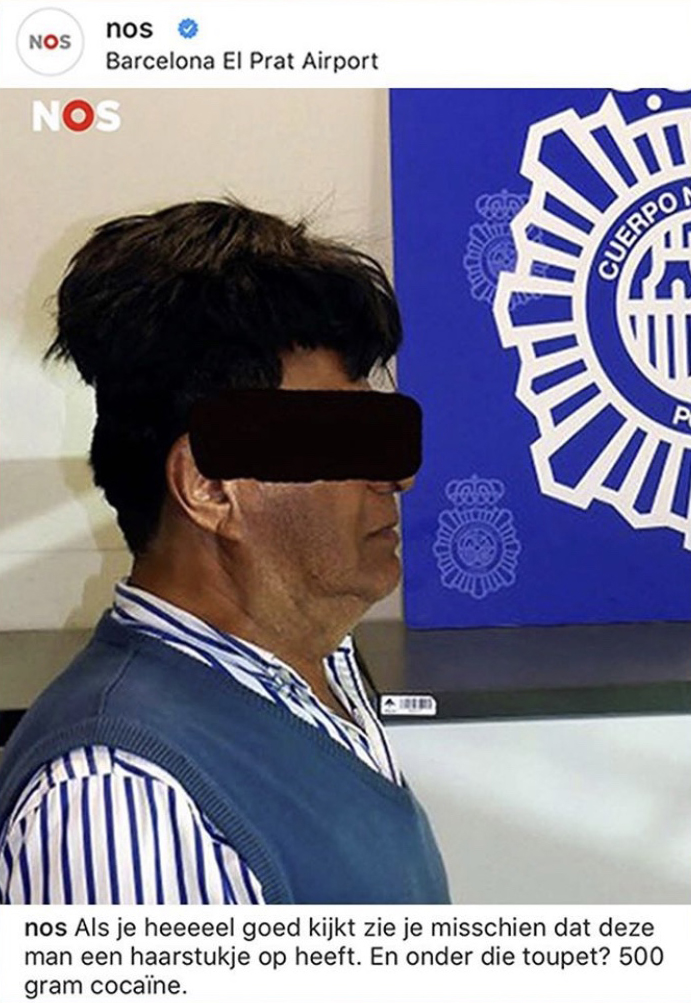 3. Deze man wilde coke smokkelen onder zij toupet.