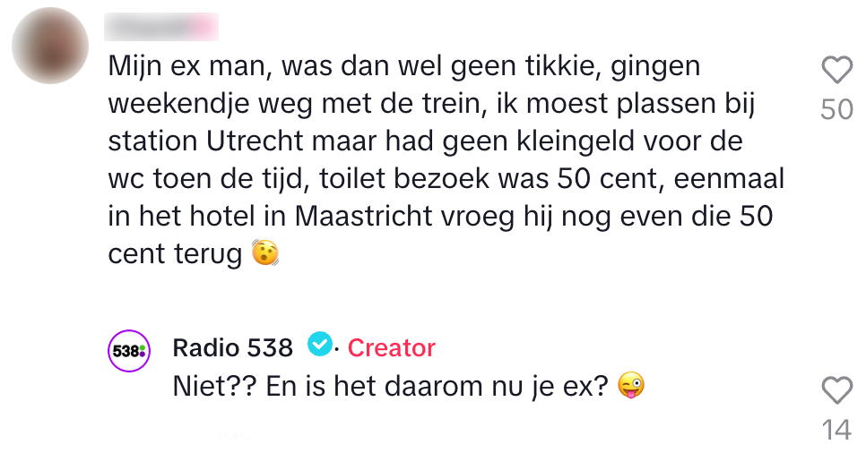 4. Nu moet ze elke maand partneralimentatie betalen voor die vijftig cent. Via Tikkie natuurlijk.