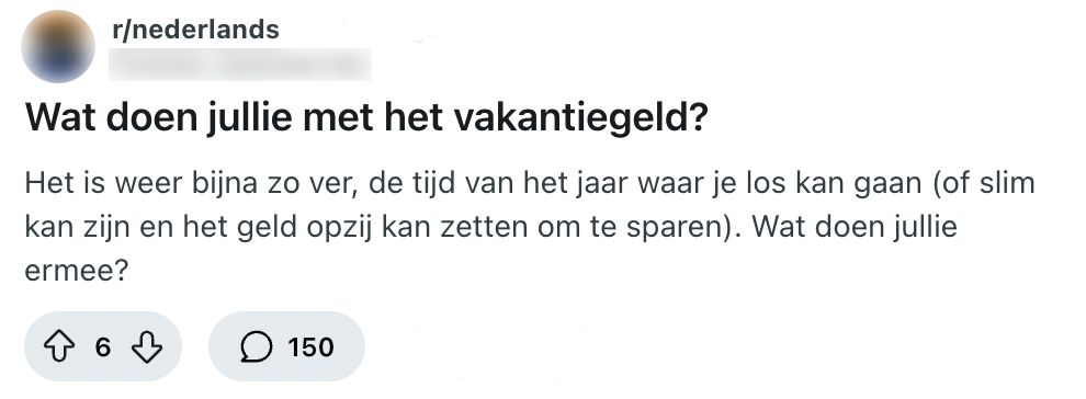 1. Deze Reddit-gebruiker is wel benieuwd naar wat andere Nederlanders van plan zijn met hun vakantiegeld.
