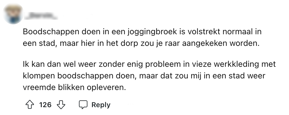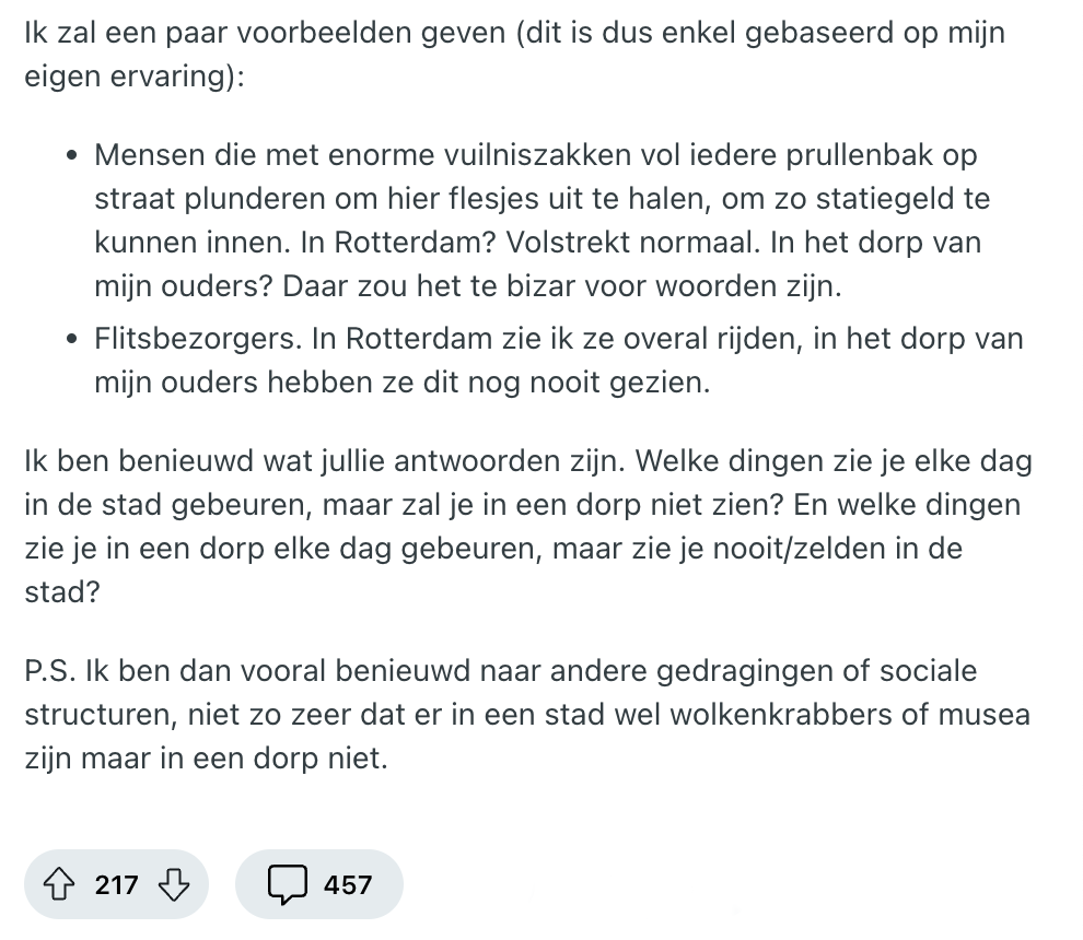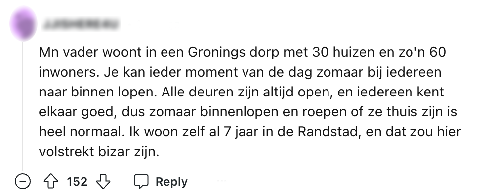 1. Deze Reddit-gebruiker vraagt of andere Nederlanders zich ook verbazen over de verschillen tussen dorpen en steden.