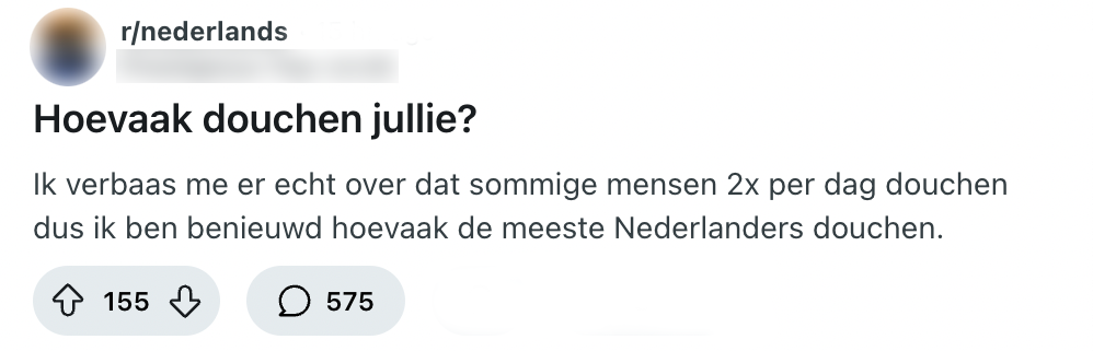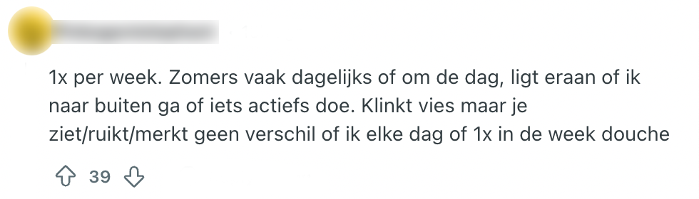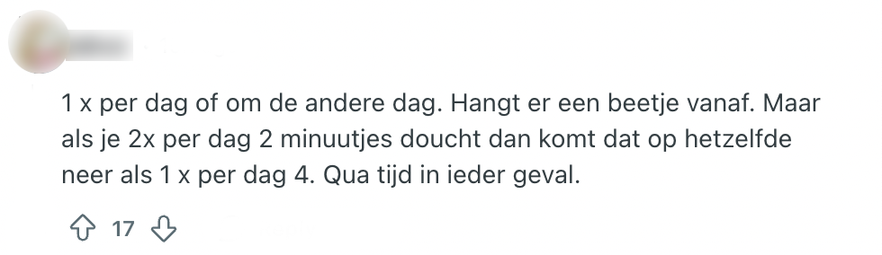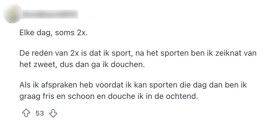 Niets is zo lekker als de tijd nemen voor het douchen, behalve een patatje mayo misschien. Het is immers belangrijk om fris en fruitig rond te lopen, zowel voor jezelf als voor de mensen om je heen. Dit kan best subjectief zijn, dus iedereen heeft een andere planning om zich te wassen. Deze Reddit-gebruiker is wel benieuwd hoevaak andere Nederlanders douchen en ziet de kans schoon om er naar te vragen. Het is al te verwachten dat de reacties alle kanten op gaan, maar toch zitten er een aantal érg bijzondere antwoorden tussen.