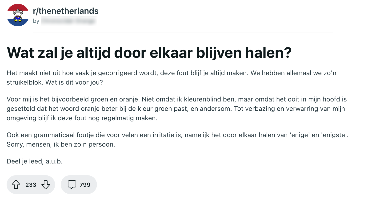 1. Een Reddit-gebruiker stelt de volgende vraag, waardoor Nederlanders het leed wat verwarring heet delen.