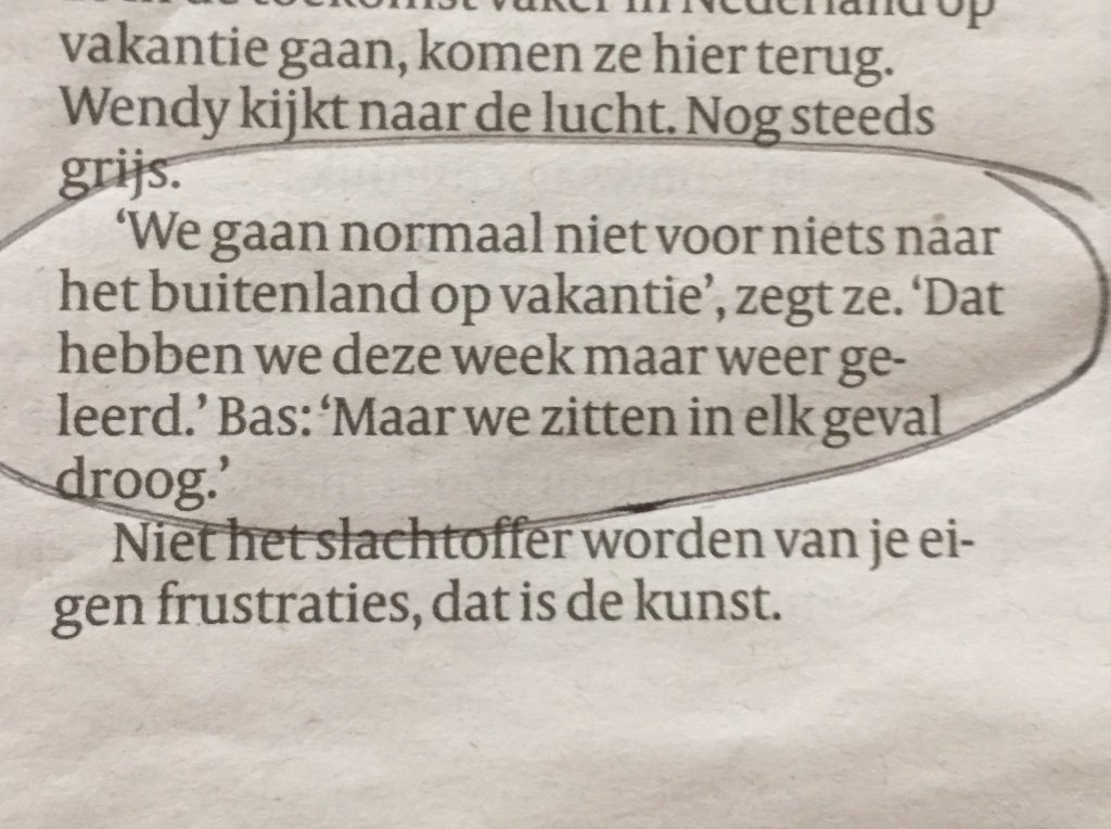 2. In een Nederlandse krant delen mensen die noodgedwongen niet in het buitenland op vakantie kunnen hun frustraties.