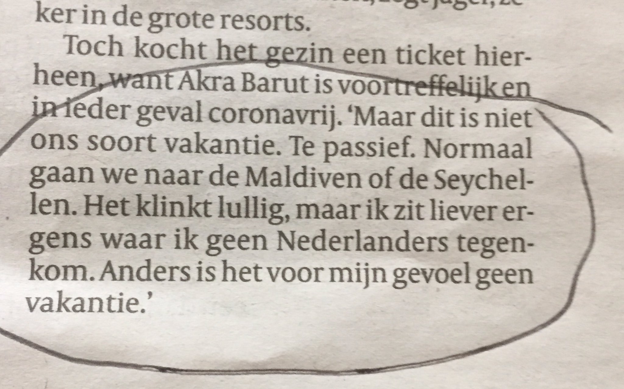 Ik vind de reacties een beetje flauw. Ja, we zijn verwend, maar ik lees in deze passages nergens dat deze mensen niet met de teleurstelling van een gecancelde buitenlandse vakantie kunnen omgaan. Het zijn ws. hardwerkende mensen die er graag even tussenuit gaan. Net als iedereen.