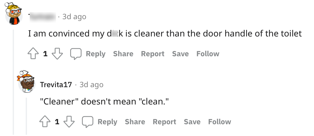 6. Er wordt geclaimd dat het zaakje van de man schoner is dan de deurklink van het toilet.