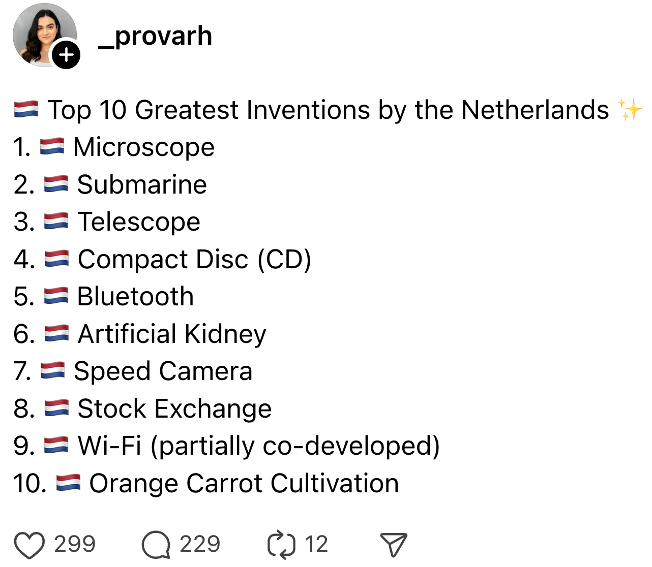 Nederland staat natuurlijk bekend om kringverjaardagen, bijbehorende schalen met kaas en wordt en gierige Gerda’s. Maar er zijn genoeg andere indrukwekkendere uitvindingen gedaan door óf met hulp van iemand uit ons kikkerland. Prova deelt een lijst met voorbeelden en anderen vullen deze flink aan.