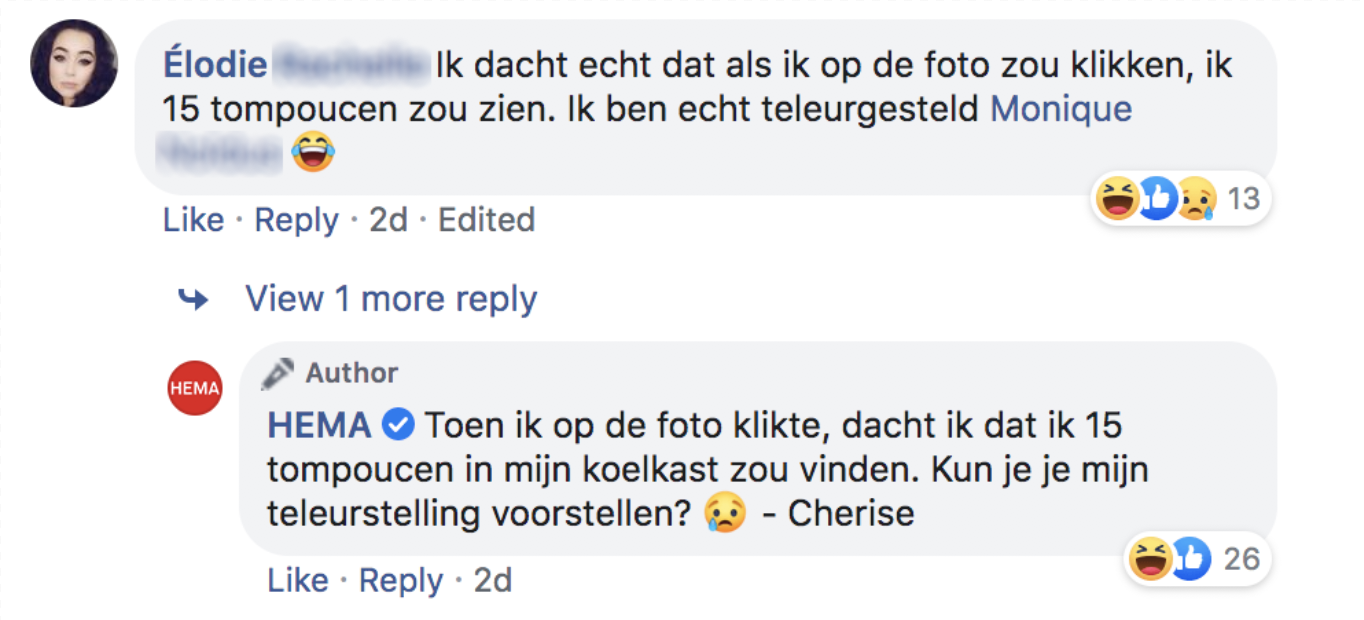 1. HEMA doet zijn best om de 15 tompoucen afstand duidelijk te maken.