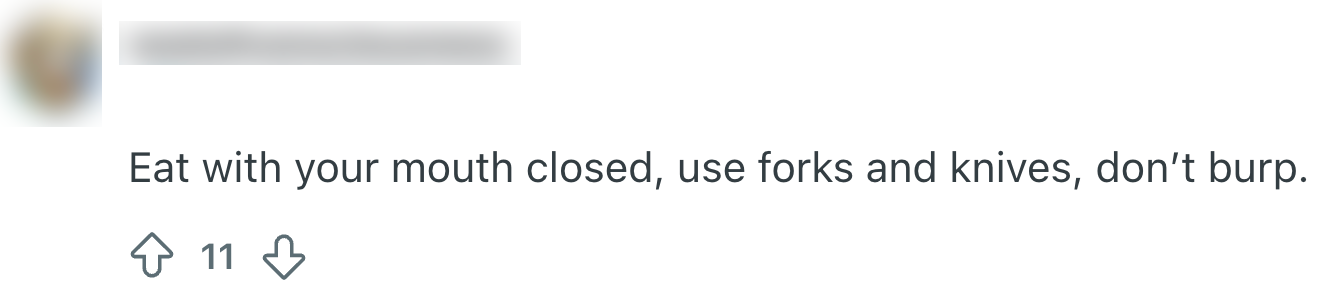 7. Je zou zeggen dat dit gewoon standaard tafelmanieren zijn.