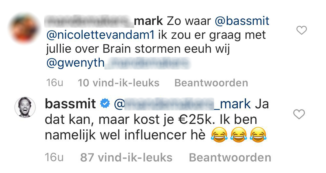 4. Maar Bas en Nicolette zijn natuurlijk zelf wél influencer.