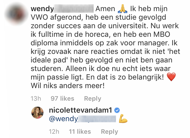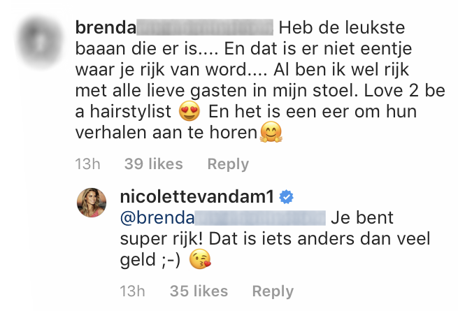 2. Net als bij haar man krijgt Nicolette ook veel reacties.