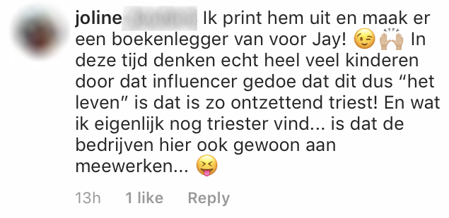 11. Joline deelt het bericht op creatieve wijze met haar zoon.