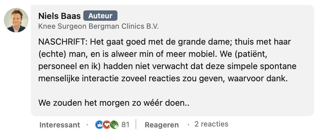 5. Zelf geeft hij nog een update en laat hij weten dat het inmiddels helemaal goed gaat met zijn patiënt.