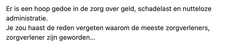 2. Niels zegt dat door alle negativiteit rondom de zorg, mensen soms bijna vergeten waarom ze dit werk doen.