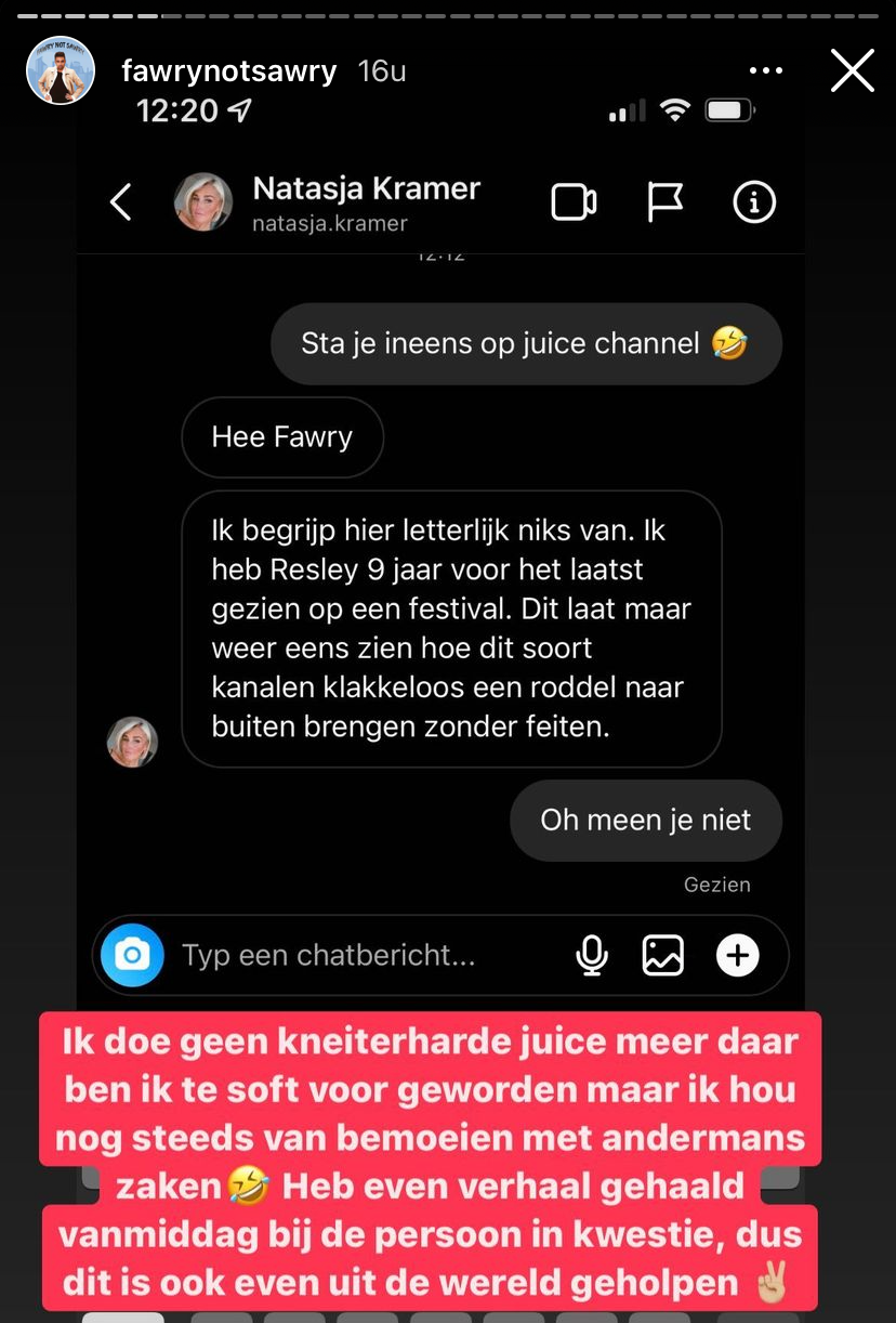 7. Gelukkig mengt Fawry zich ook in de discussie: na een mooi stukje onderzoeksjournalistiek komt hij met de bevestiging dat de vrouw waarmee Resley zou zijn vreemdgegaan, dit volledig ontkent.