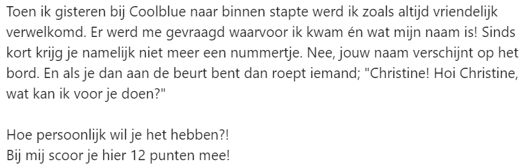 1. Christine wil niet meer een nummer zijn en heeft bij Coolblue de oplossing gevonden.