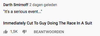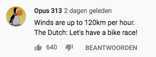 Of iets verder bij 0:43 ‘NK tegenwindfietsen’. Heerlijk.