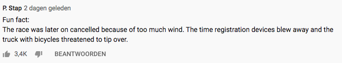 Of iets verder bij 0:43 ‘NK tegenwindfietsen’. Heerlijk.