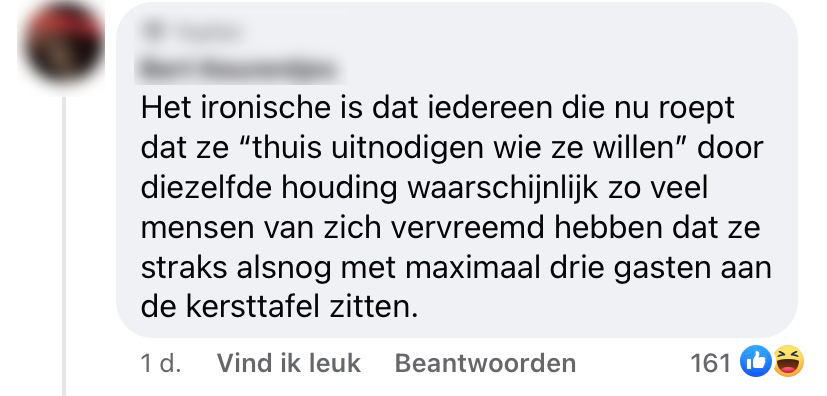 Deze feestdagen moeten we het doen zonder de volledige familie of vriendenkring. Je mag met kerst maximaal drie mensen uitnodigen, en met oud & nieuw maar twee. Natuurlijk vinden Nederlanders dat niet erg leuk. En al helemaal niet wanneer het nieuws naar buiten komt dat de politie hier thuis op gaat controleren. Ze zeggen namelijk dat ze gaan aanbellen bij volle woonkamers, maar Nederlanders reageren vooral laconiek.