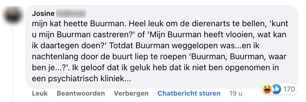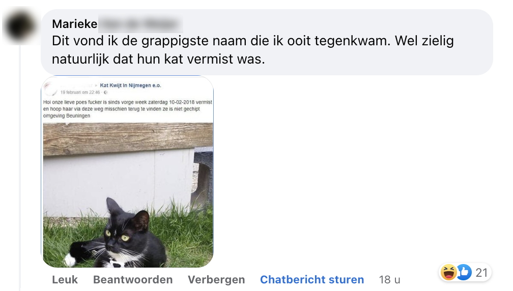 Onlangs schreven we een artikel over de meest rare dierennamen. Maar al gauw bleek in de commentsectie onder het artikel dat jullie hier nog niet over uitgepraat waren. Dat resulteerde in nóg meer opmerkelijke dierennamen, waarvan we afvragen of de baasjes er later geen spijt van gaan krijgen. Maar hé, Max de hond en Snuffie het konijn is nou ook niet echt fantastisch, toch?