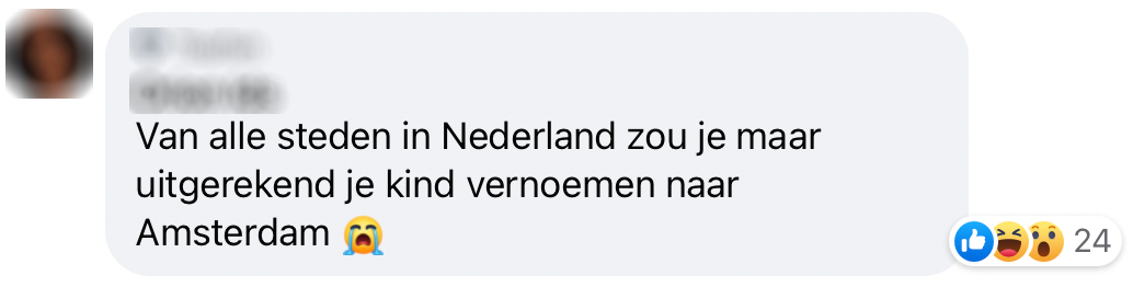 Jolie is in verwachting van haar tweede kind en wil graag dat de naam van de nieuwe spruit naar Amsterdam verwijst. Ze vraagt raad op Facebook in de Amsterdam Durft Te Vragen-groep. Jullie gingen onder ons artikel los met potentiële namen voor het kindje van Jolies. We hebben hier zo om gelachen dat we deze wel met jullie moesten delen…
