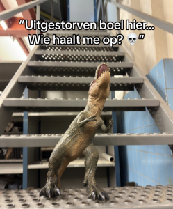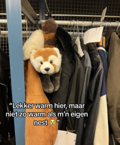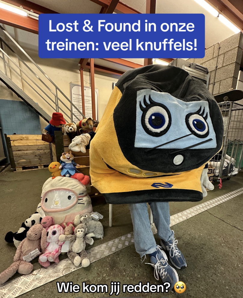 1. De mascotte van NS houd zich druk bezig met gevonden knuffels.