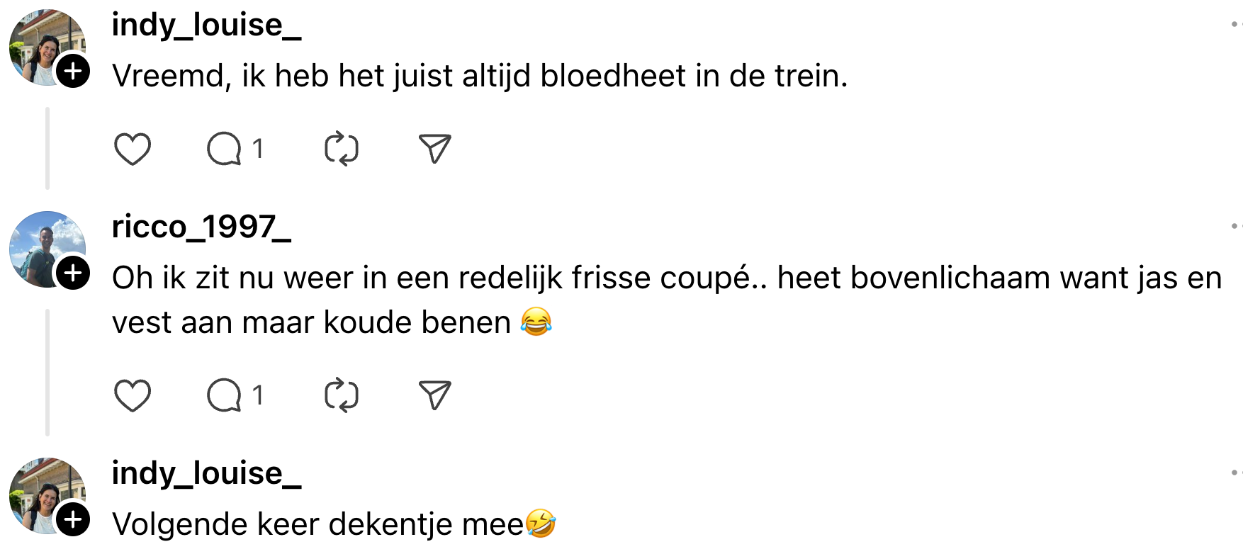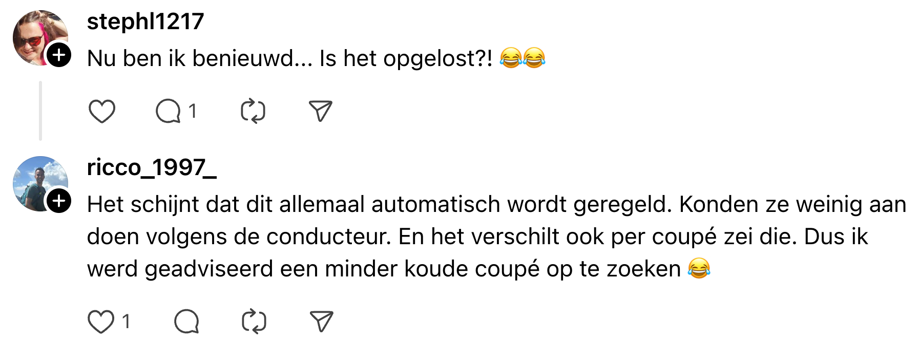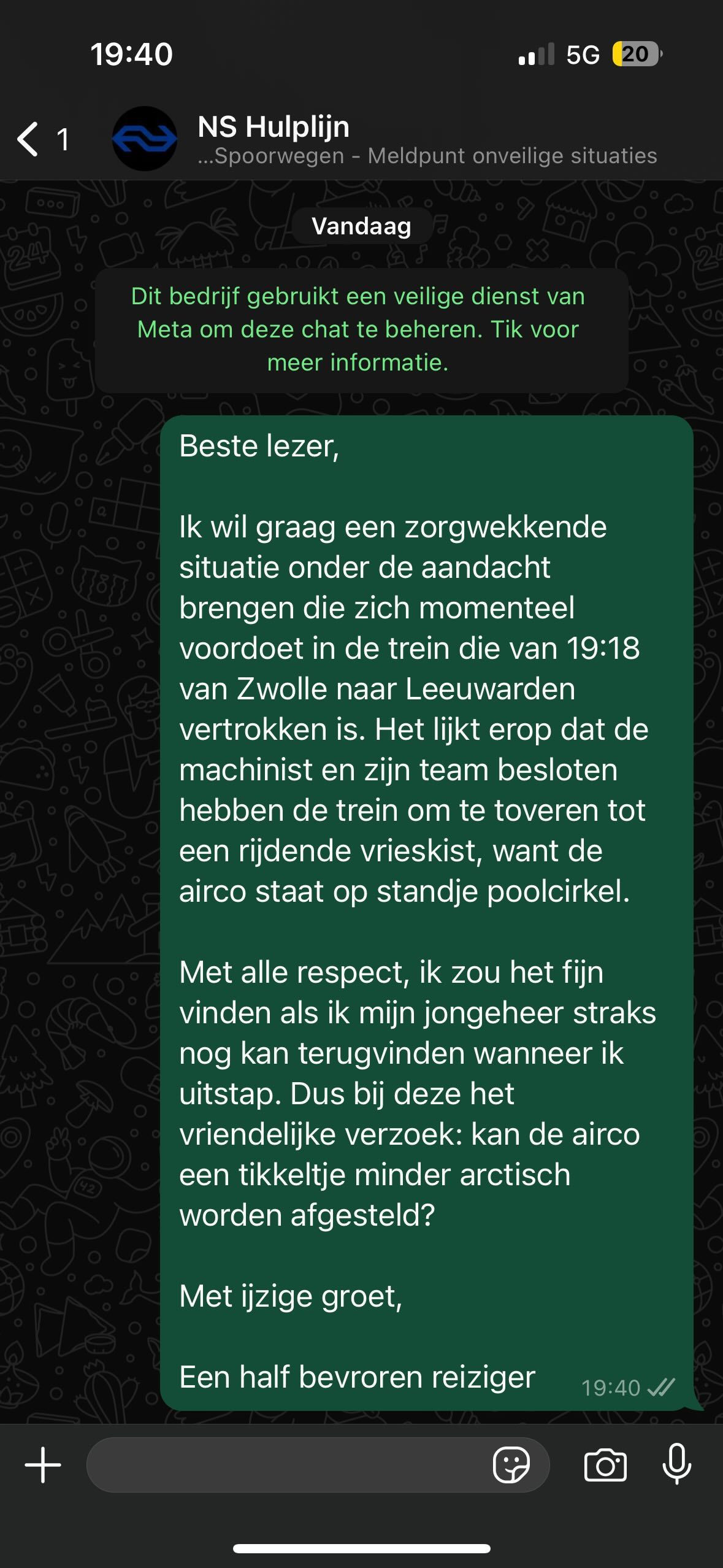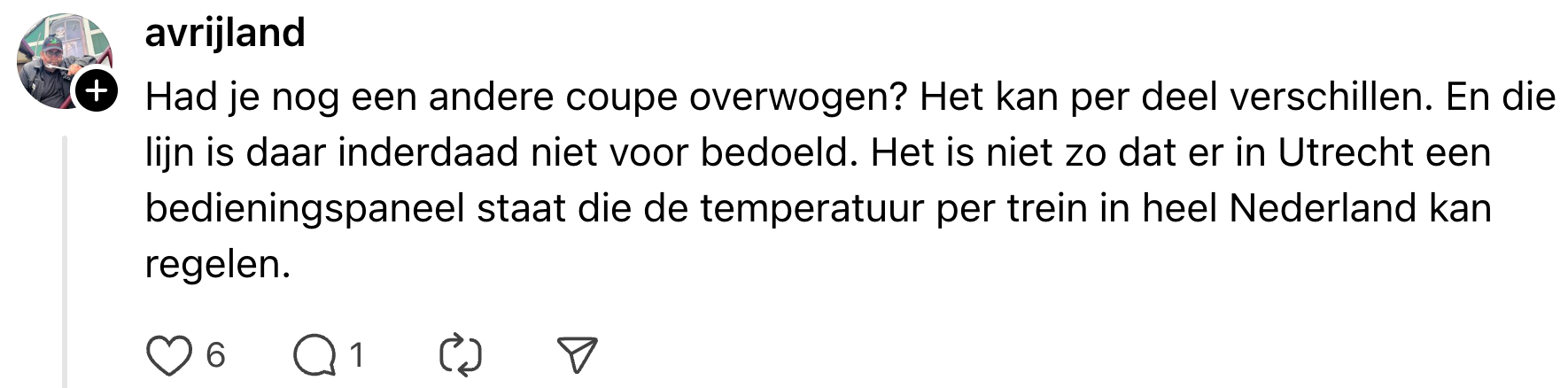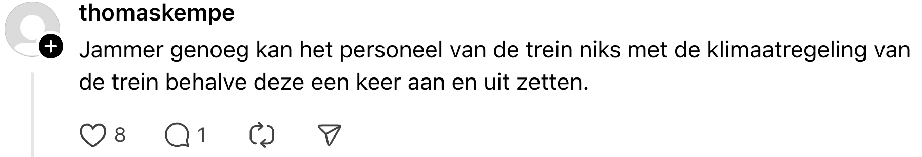 7. Tja, die lage temperatuur in de trein is gewoon voor je eigen bestwil.