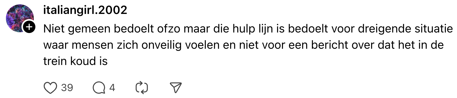 Als je in de trein zit en in een onveilige situatie belandt, kun je niet altijd rekenen op omstanders. Zeker later op de avond kan het zomaar zijn dat je alleen in een coupé zit. Gelukkig heeft de NS een hulplijn ingesteld waar je naartoe kunt appen of sms’en, zodat zij je vanuit de meldkamer kunnen helpen. Ricco besloot de hulplijn echter voor een heel ander doel in te schakelen, en krijgt daarmee de lachers op zijn hand.