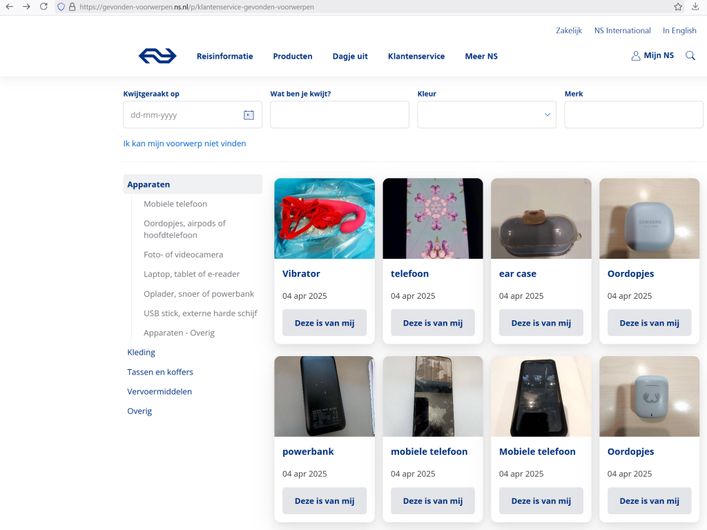 1. Dit opvallende item op de website met gevonden voorwerpen van NS is voor sommige Nederlanders het hoogtepunt van de dag.