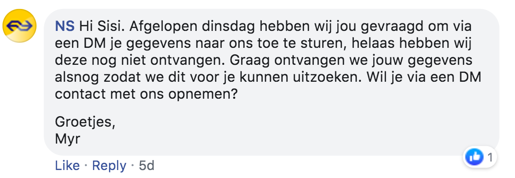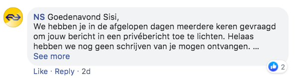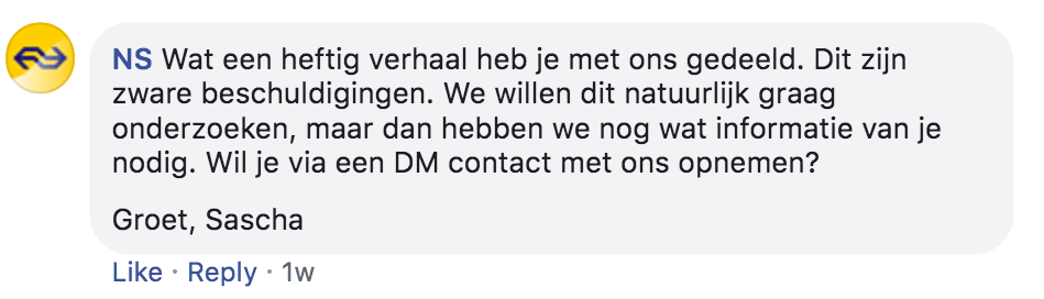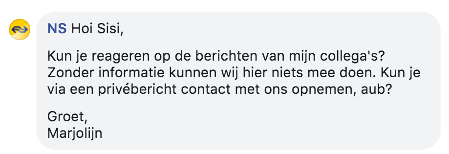 2. Het NS webcare team neemt het bericht absoluut serieus.