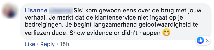 3. Dan volgt er tweede bericht op de tijdlijn waarin wordt gedreigd met ‘bewijsstukken’.